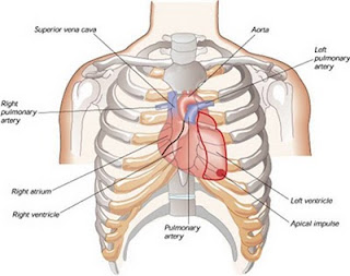 | Gambar letak jantung manusia pada rongga dada (thorakalis) |